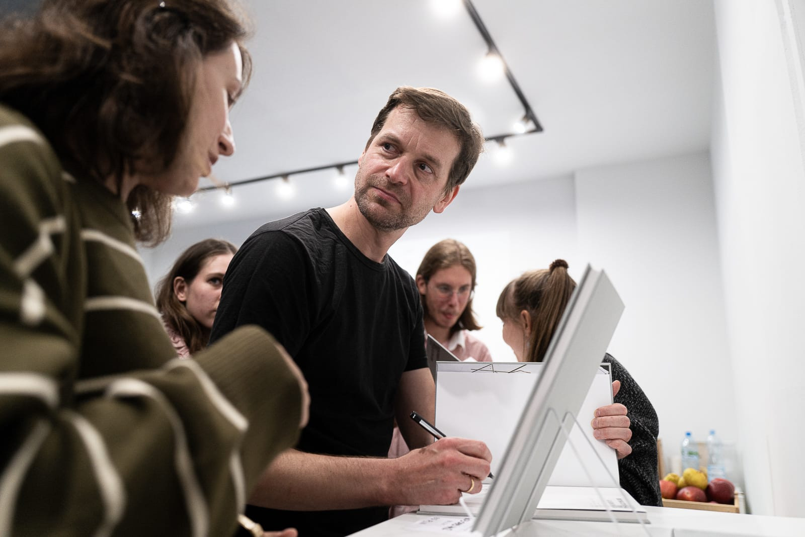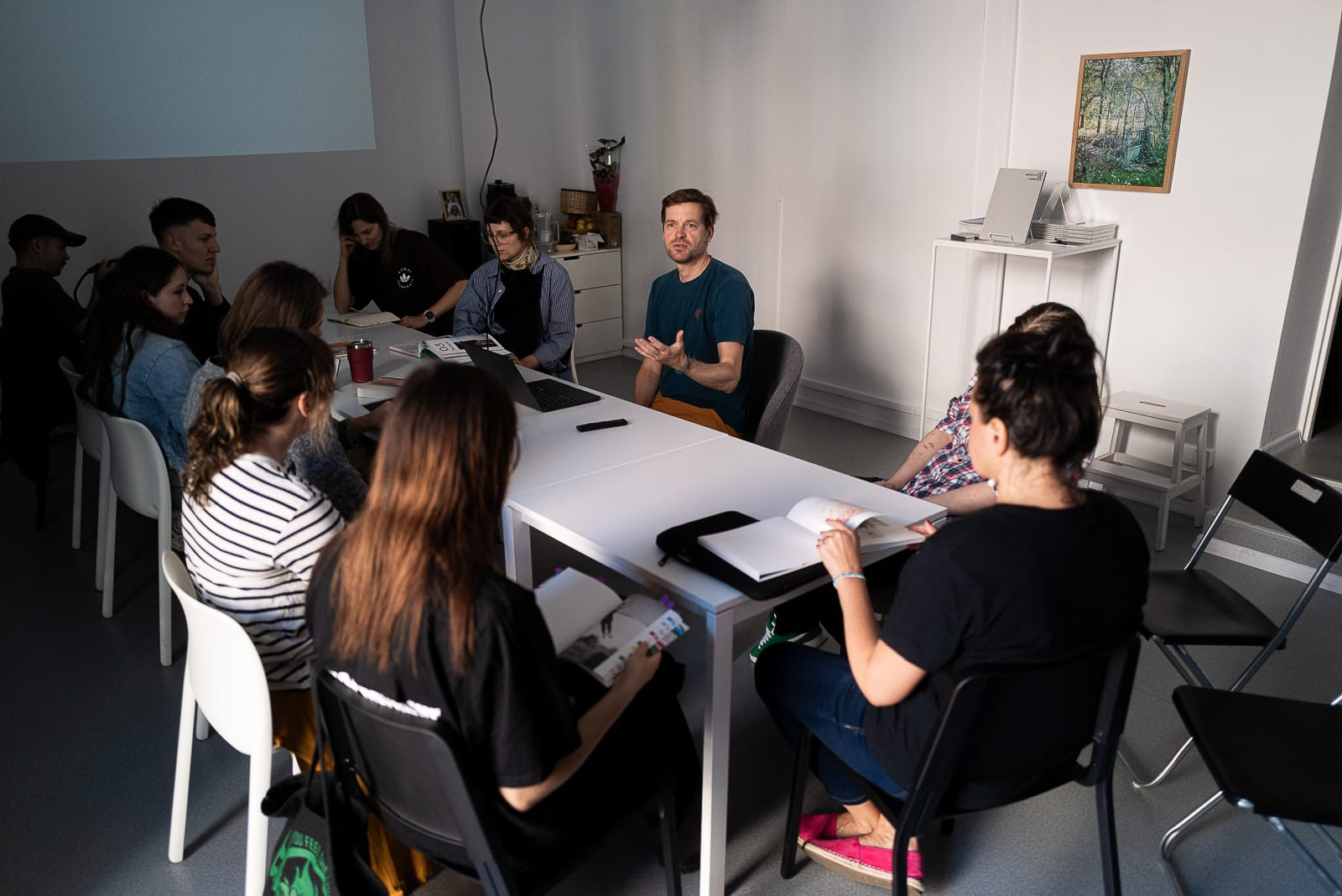 Uczestnicy mieli możliwość pracy z Michałem Adamskim, Mariuszem Foreckim i Adrianem Wykrotą w różnych formach – od zajęć stacjonarnych w Poznaniu, przez indywidualne konsultacje online, po prezentacje projektów warsztatowiczów.